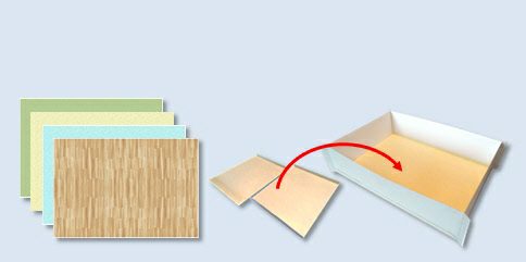 - Dekore erhältlich in Linoleum grün, gelb, blau