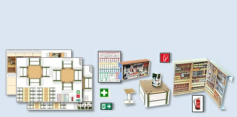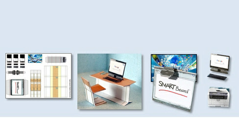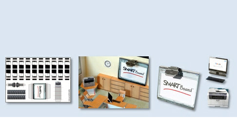 - Smartboard, 3 PC-Bildschirme mit Tastatur, 1 Drucker