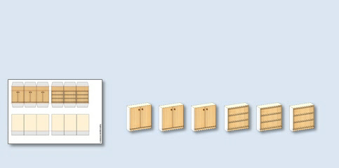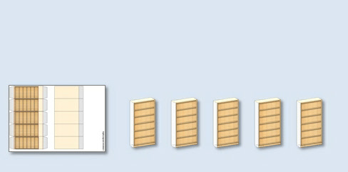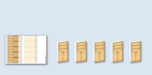 - 5 zusätzliche Schränke „Regalaufsatz hoch“, anreihbar